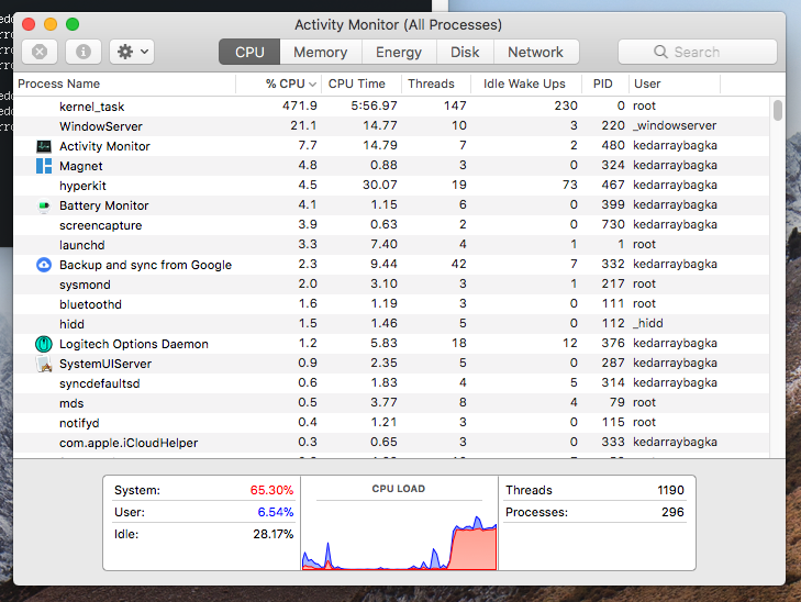 External Display and kernel_task CPU usage goes up by around 450% to 500% and the system slows down.