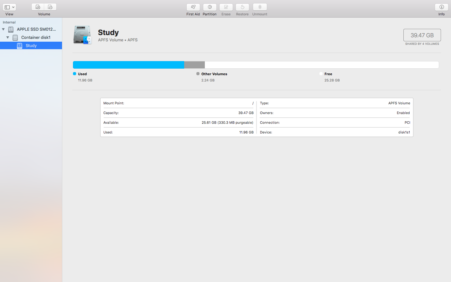 2: Apple_APFS Container disk3 40.6 GB disk0s2