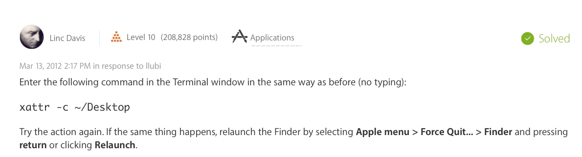 Thank you for the quick response and repair info. I tried all steps and ran the first aid repair but still have the same problem. I can open and edit my existing desktop files but cannot add a new file to the desktop. That seems to be the only problem at this point.