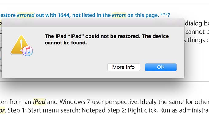 It wont Update or Restore. iTunes throws up an error Error 2006, then it says "iPad cannot be found".