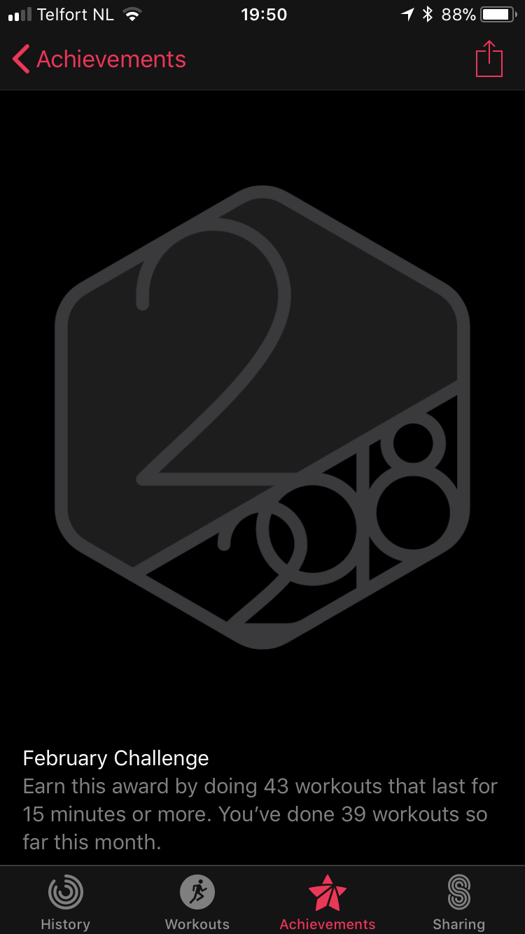 For the February challenge I had to complete 43 workouts of at least 15 minutes.