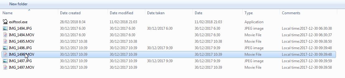 IMG_1496.MOV (has 30/12/2017 10:39 and IMG_1496.JPG has 30/12/2017 9:39)