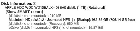 APPLE HDD WDC WD10EALX-408EA0 disk0: (1 TB) (Rotational)