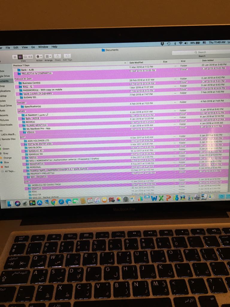 I am not sure what is causing this? I tried re-installing chrome, restarted my Mac several times. Nothing seems to fix it and it is not just chrome. I am having the same issue when I start a power point presentation, the whole screen turns pink.