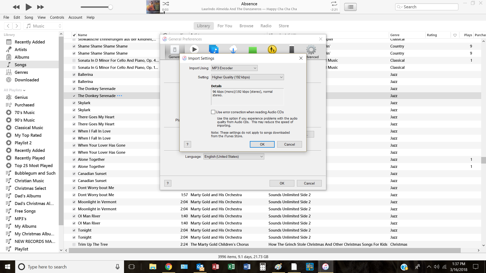 I have Windows 10 PC and am using iTunes version 12.7.3.46 Please help me solve this problem. I have tons of albums to record.