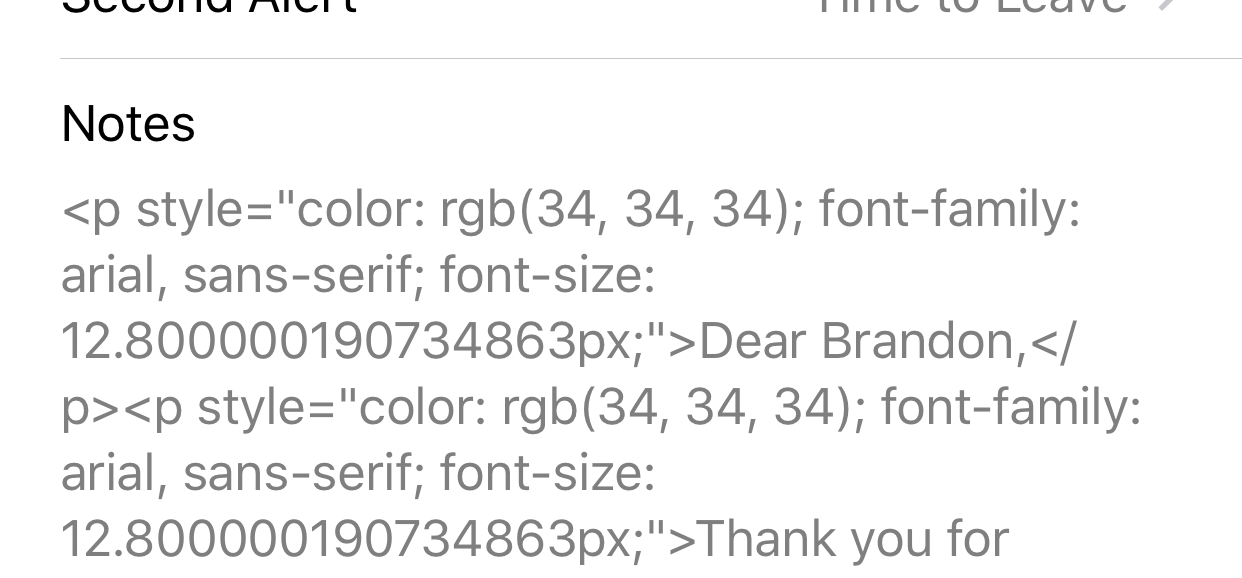Google Calendar HTML notes