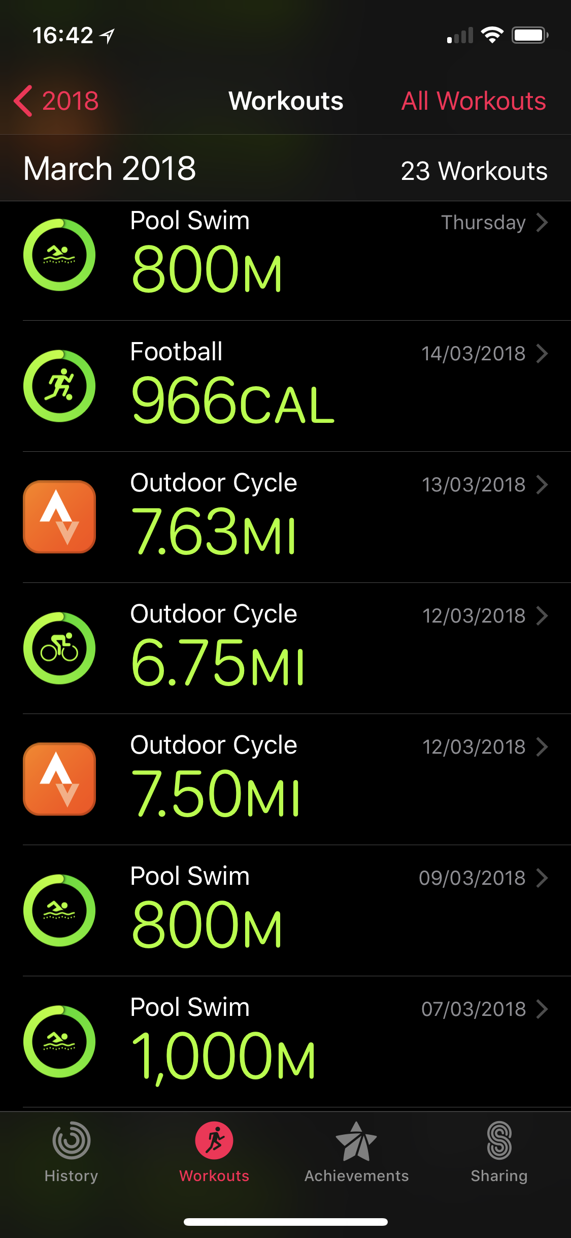 I have recorded several bike rides all over 15 using the Strava app, these show up in the workout summary however as you can see from the photos they are not registering as workouts on the monthly challenge, only the workouts recorded directly through the workout app are registering towards the challenge.