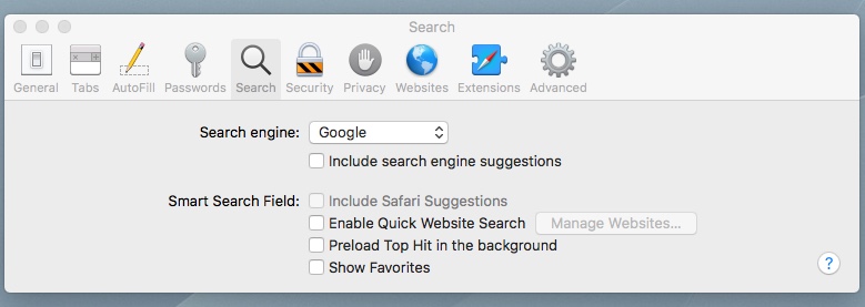 Thanks, tygb. I use Sophos as a virus protection but I don't use entrecheck. As I said in my post, I have unchecked the selections in the Search tab of Safari Preferences with the intent of suppressing these "suggestions," but it seems to have no effect. Whenever I type in the search window, Safari and Google offer useless "suggestions" that simply clutter the page. As an experiment, I removed all bookmarks except for a few items in the Favorites bar, but that just gave Safari a smaller universe of items from which to make irrelevant "suggestions." For example, I have nothing in the Favorites bar that begins with the letter K, but if I type K in the search bar, Safari suggests "The New York Times." This tells me that despite what I did on the Search tab of Preferences, the function has not been disabled and Safari is still trying to offer "suggestions." So to repeat my original question, what else do I have to do to turn off this function?