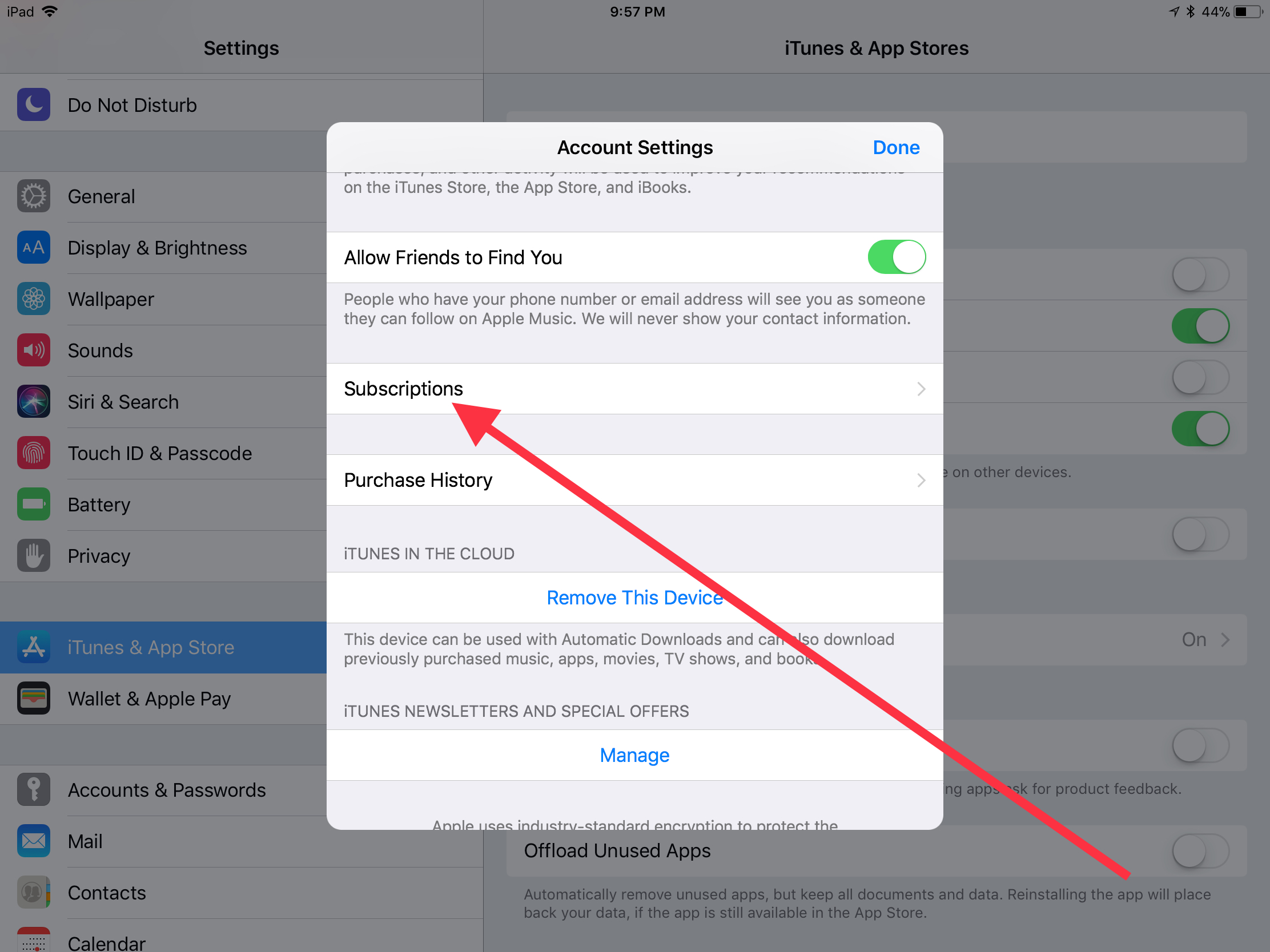 Go to Settings —> iTunes & App Stores —-> Click on Screenname and sign into your Account —-> Select Subscriptions. Once there you can review and cancel all automated payments.
