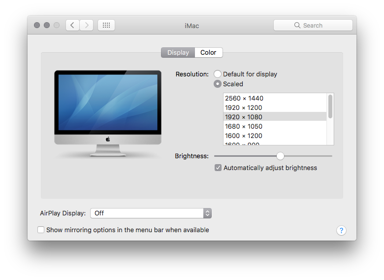 Can iMac 5K 2017 (18,3) show 1920x1080 resolution in MacOS Sierra?