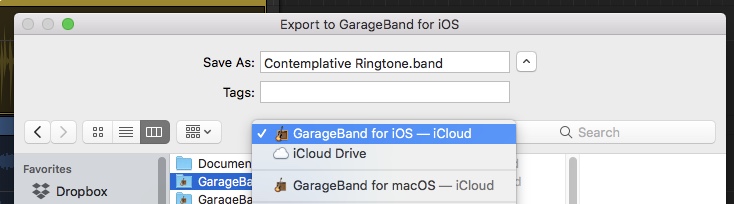 3) Save the project to the GarageBand for iOS folder you created earlier in Step 1.
