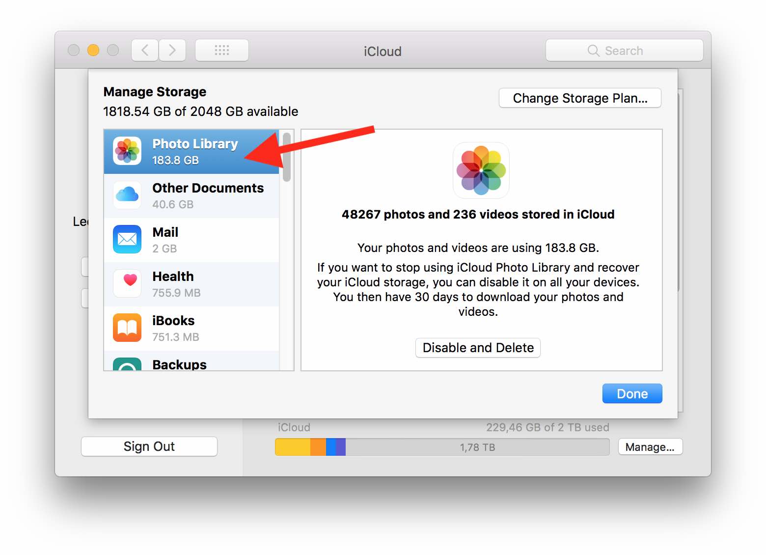 How do I determine the file size of the photo collection in Icloud?