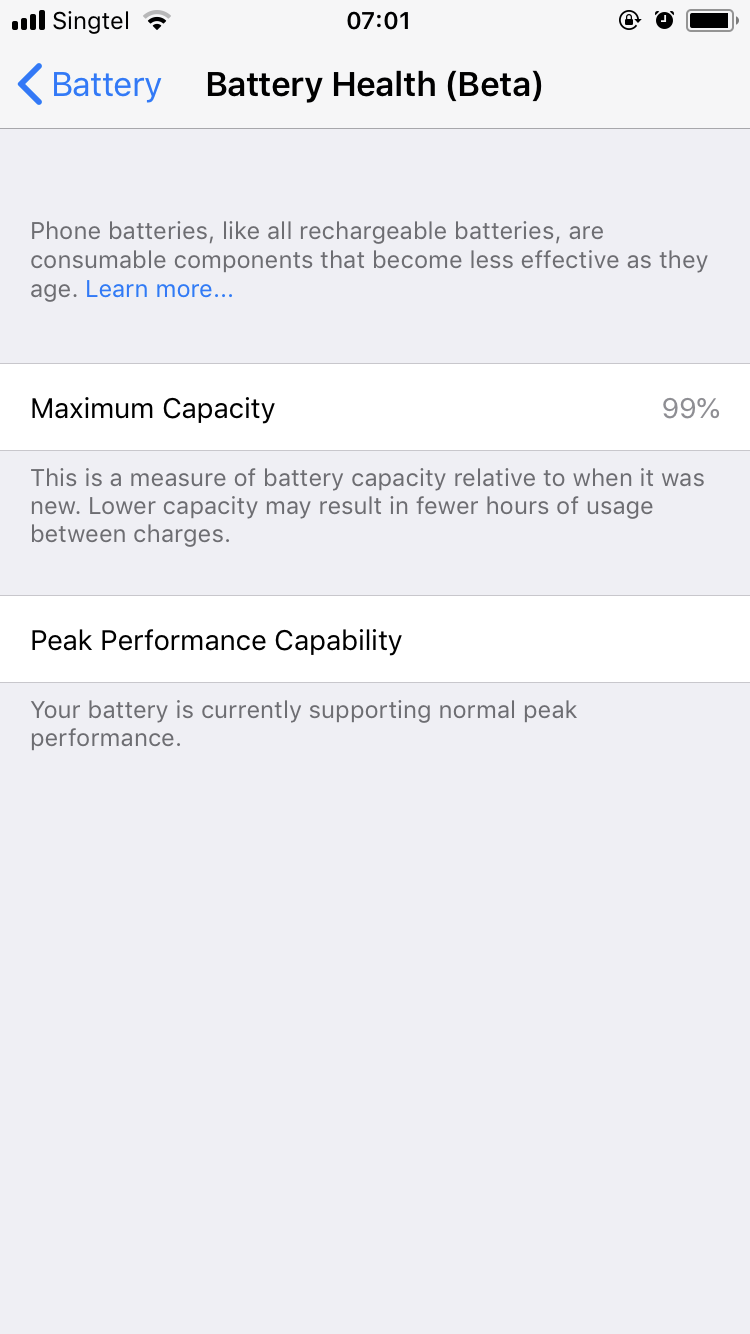 Apple rates the battery at 500 complete charge-discharge cycles before a typical reduction in battery health to 80%. So if it's an average 250 cycles per year, a linear degradation would be expected to mean a reduction to 90% in one year. 99% doesn't sound like there's a problem.