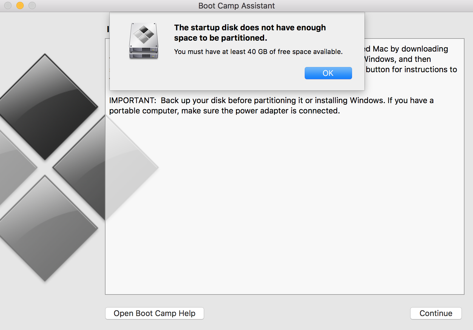 I am trying to install W7 but BCA reports there is not enough space on my drive. I have tried First Aid and restarted to no avail. The Erase option is blanked out. When trying to add a partition it says there is only 18GB available which is untitled.