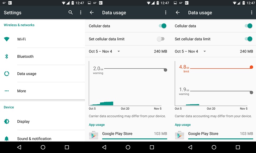 As you can see in the picture, the user has set a limit at 4.8GB and gets a warning at 1.9GB. He set that based on his data plan.