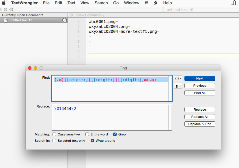 I meant "the bigger picture". Are you trying to rename files or something? You mentioned that you were going to use sed. BBEdit is OK, but sed might behave much differently.