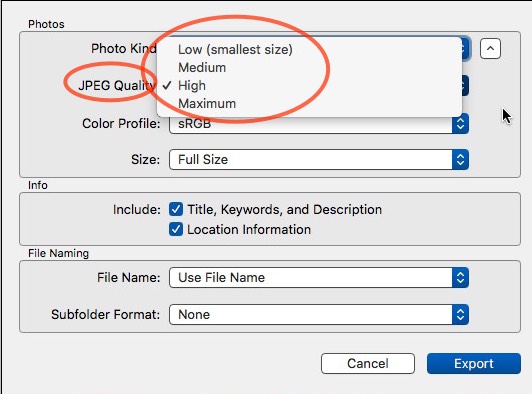 The JPEG Quality level Maximum produces a jpeg file that actually a bit larger than the original JPEG file. I have no idea why. The Large level produces a file size just a but smaller.