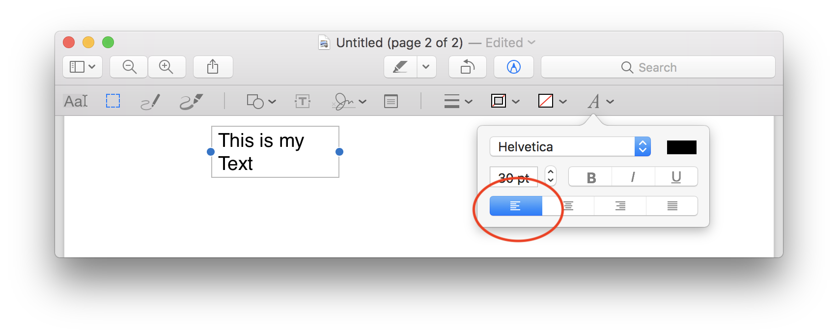 I am in Preview Version 9.0 and running Sierra 10.12.6 on a MacbookPro with a storage capacity of 1T. I thought that my text boxes in Preview were justify left align until I needed it to do just that. Cannot for the life of me get it to not center text in text boxes. I noticed that there was a thread 6 pages long in 2011 -2014 with no resolve from Apple. So started new thread . HELP!!!