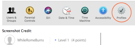 Launch System Preferences. Do you see any profiles added to the pane at the bottom?