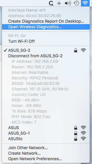 If I go to Airport Utility (6.3.8) and "edit" the AE, and click on the Network tab, I see that Router Mode is "Off, Bridge Mode", so I believe I have managed that correctly. My question: how can I verify that I do not have double-NAT (or does what I just reported insure that's the case) ? And, how can I verify that my wireless clients are indeed connecting to the router that's in the same room ? On my Macbook, I know to option-click on the wifi icon, and it gives me a bunch of info about my wireless connection, for example that I'm connected to a 5GHz radio and the channel number; but how do I tell WHICH actual piece of wireless hardware my Macbook is communicating with ?