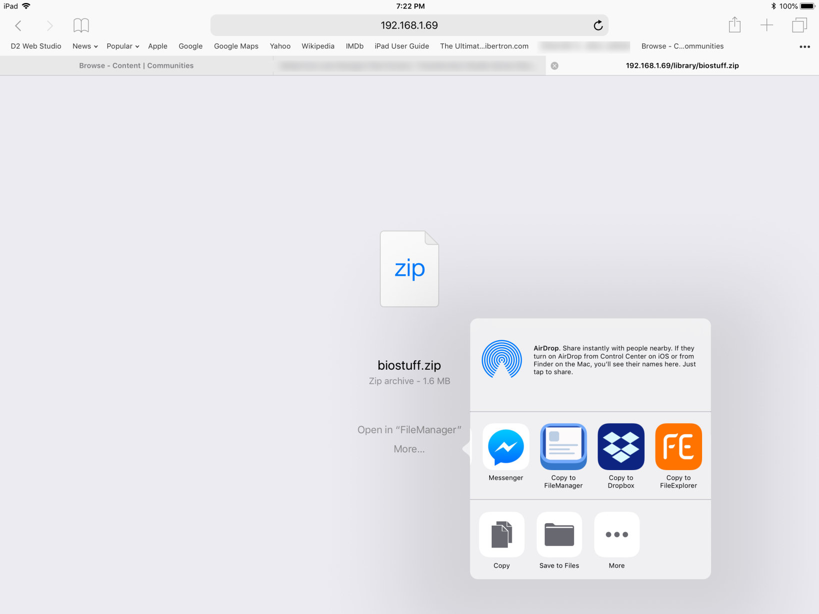 You cannot download anything from a website on an iDevice unless you use another third party web browser thats supports downloading data or an app that is needed to support a “cloud” data storage service to download data from this data storage service to an appropriate app on an iDevice.
