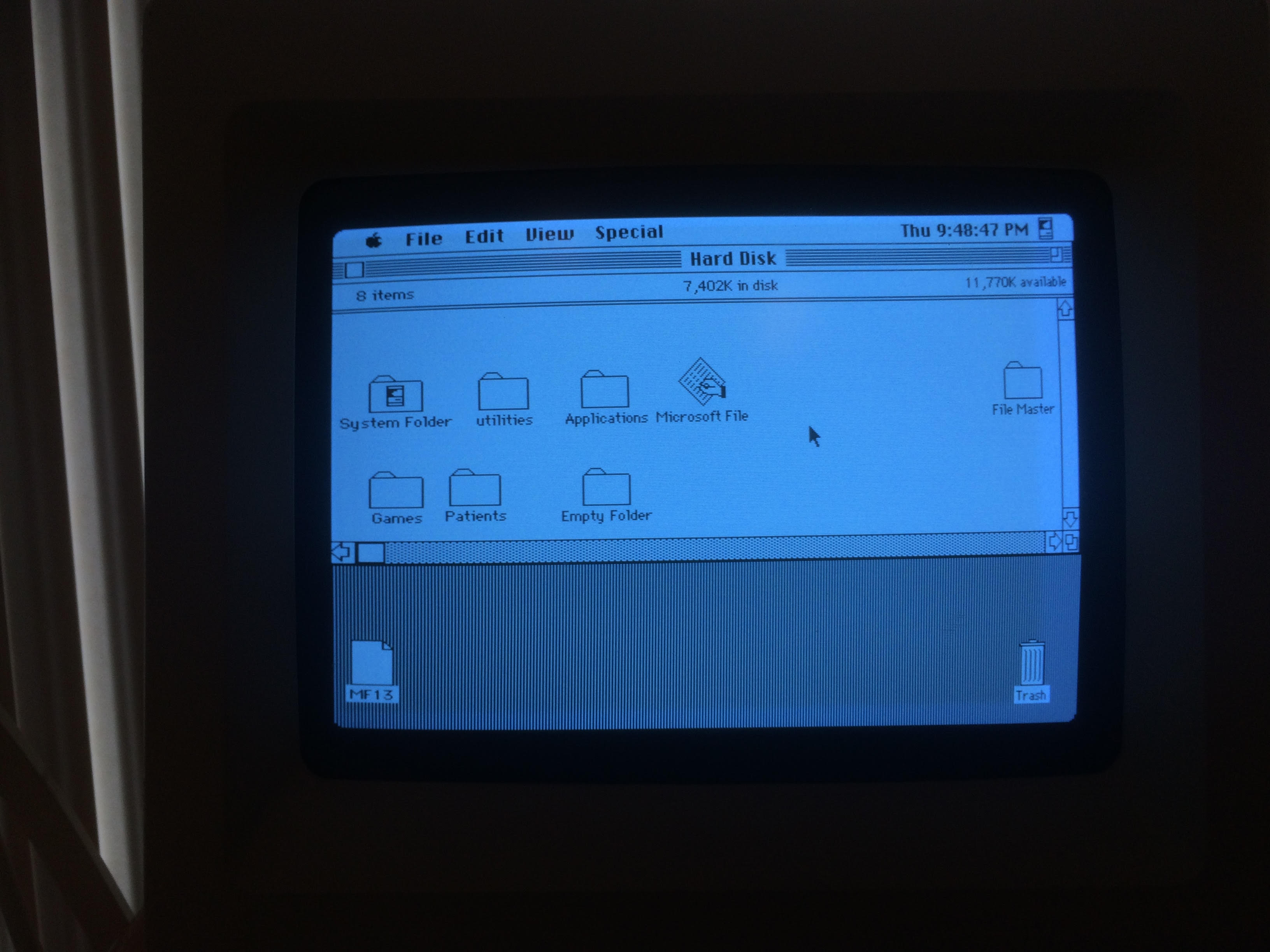 I recently picked up a original mac SE and i'm experiencing a strange issue. The crt does not have consistent linearity. Say you get yourself a circle, it looks normal when its in the center of the screen, now move the circle to the left of the screen and it turns into a oval. For reference i have a file and the trash can on both sides of the screen, see how thick the file icon is compared to the skinny trashcan? Also notice how "Hard disk" is not in the center of the screen, its offset to the right. Any ideas?
