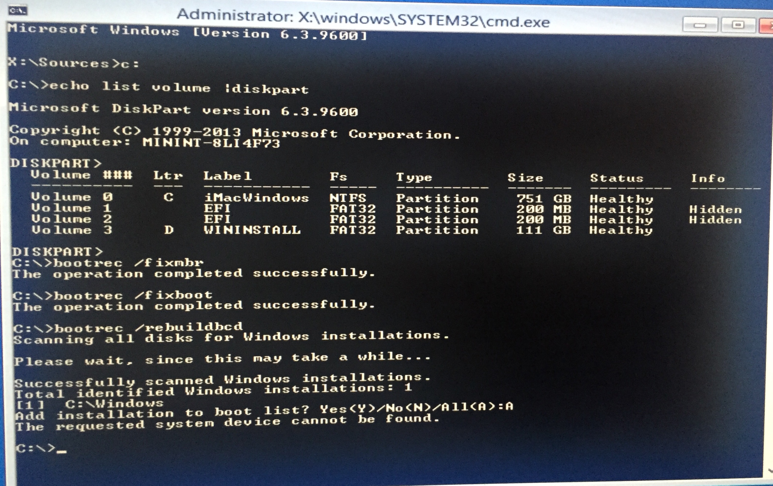 • After I failed to log in, I created a Disc Image with Winclone. If i decide to remove the partition and re-install Windows and then restore with this Disc Image, what's the likelihood of it working or does this image contain the error/corrupt files that will again give me the black screen before I could go it and fix the problem?
