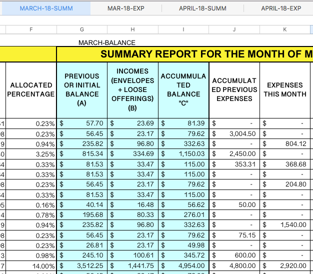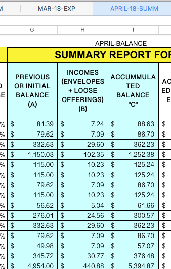 - One of the two sheets for each month contains a table named "month-BALANCE", where "month" is the name of the month that is part of the Sheet name of the sheet containing that table.