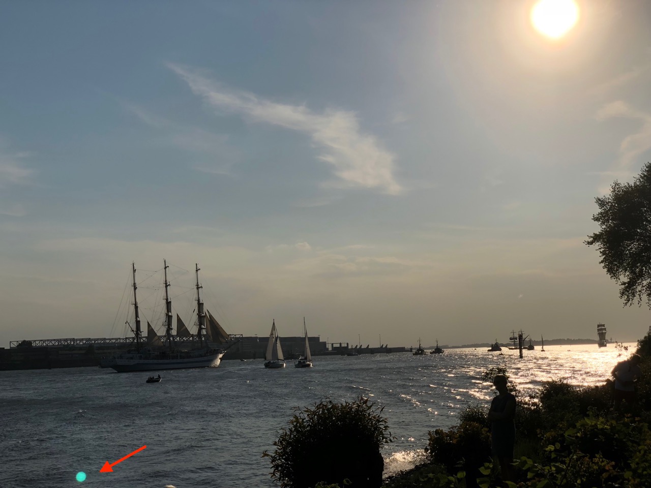 Yesterday I noticed that the new photos I have taken with my iPone are showing a circular spot, cyan coloured. The spots are not in fixed place, on each photo in a different location. And they are only visible in the HDR version of the photo. The normal version of the HDR-Normal pair is fine, so it does not look like a problem with the lens.