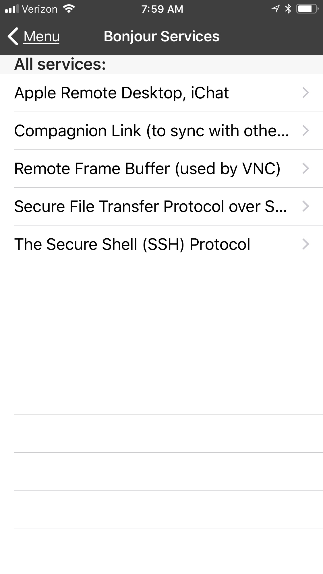 We have a house full of Apple devices, phones, ipads, laptops. I've been having trouble in the mornings with traffic congestion (I think). Unable to load email, etc. I look at my trusty Net Analyzer to see what's going on under the surface and there's a veritable grand central station of bonjour connections between the various Apple devices. I don't know what they're all for, but there's Apple Remote desktop, IChat, Remote Frame Buffer, Secure File Transfer Protocol, Compagnion Link, when I talk to the family nobody is chatting or transferring files, they're looking at Facebook (or trying to) reading email (or trying to) reading webcomics (or trying to). What I don't get is why would the phone be connected to the laptop, instead of to the modem? Why would the laptops be connected to each other? I could see file transfer for webcomics I guess, but why transfer them from laptop to laptop?