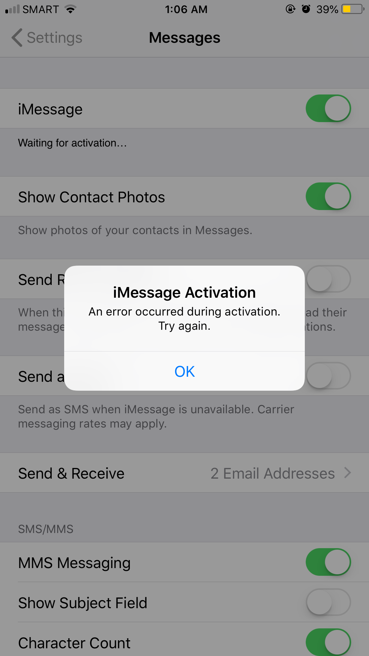 Tried everything in there but nothing worked. My date and time is set to automatic and I am on. iOS 11.3.1. I wonder why it went back trying to activate when it was working fine earlier this month.