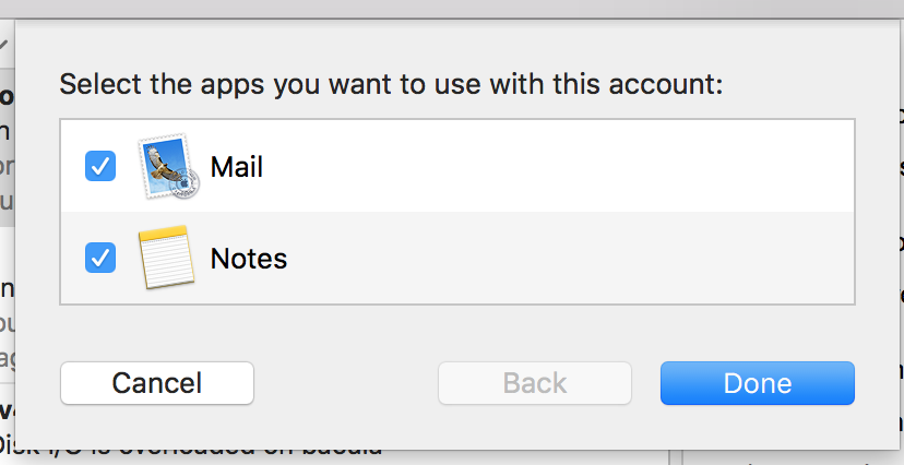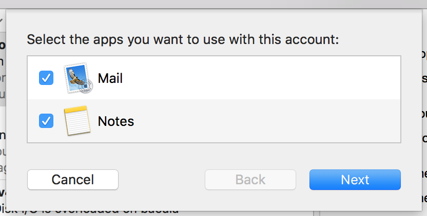 But when I have filled out all the info (username, password, in- and outgoing serverinfo), it asks which apps I want to use it with. I only have two options: E-mail and Notes. I choose "E-mail" and press "OK". And then nothing happens. I can press "OK" 10 times, at nothing happens. The dialogue box is still there.
