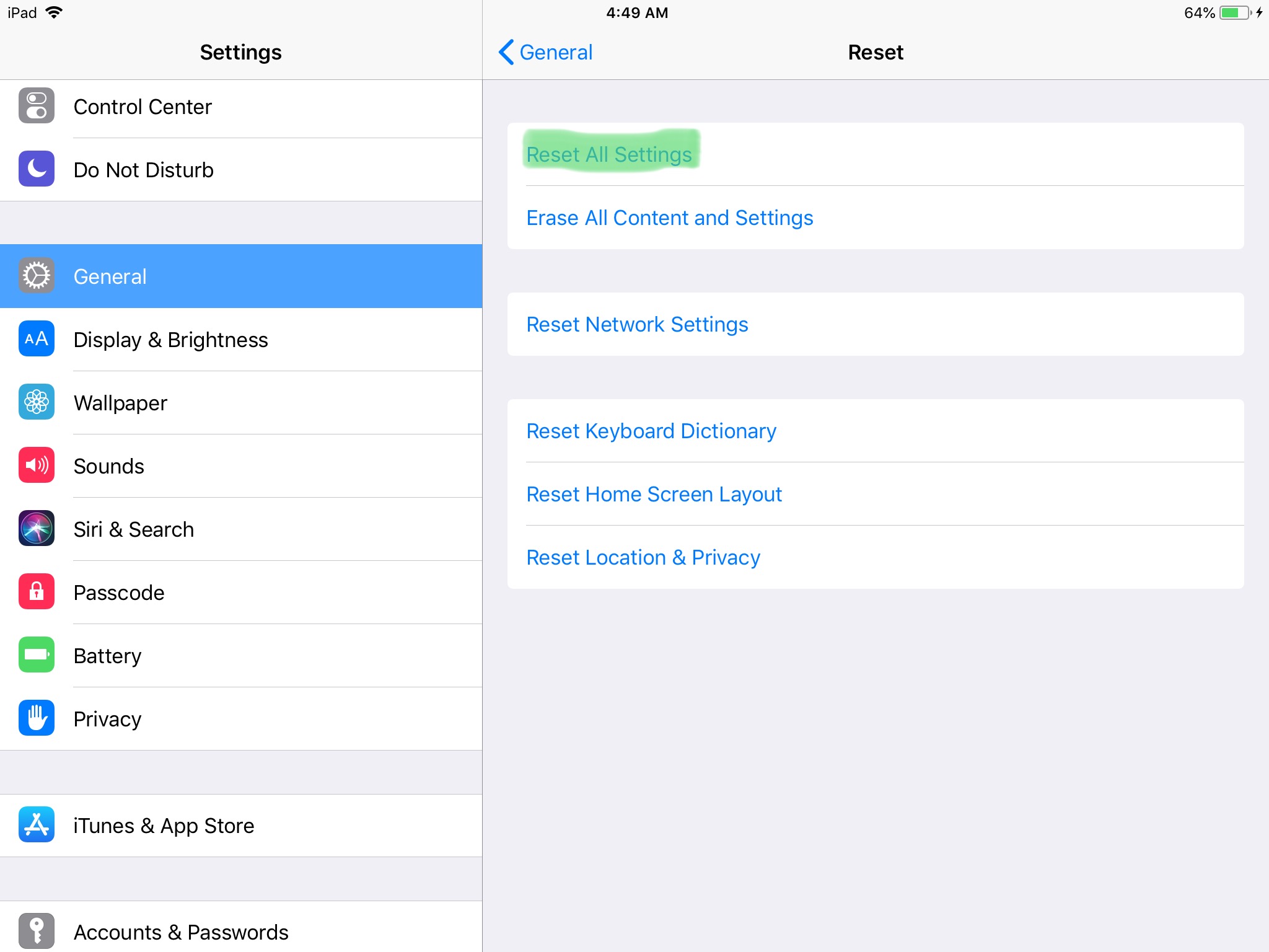 after reserching , the best solution is reset the setting , go to setting >>> general >>> reset >>> and select the first one , reset all settings .