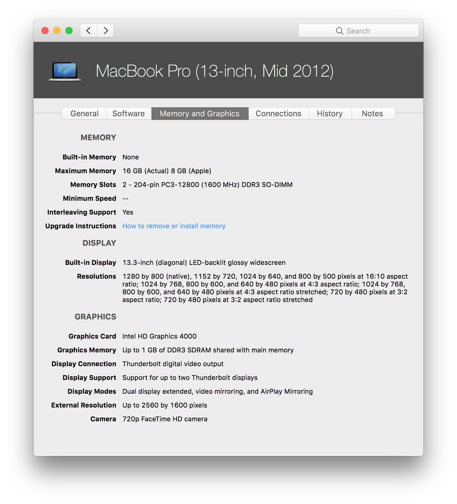 Then in theory my 17 inch should be able to run it as I have checked both graphic cards are the same for my 13 inch pro and my 17 inch pro yet the 17 inch pro can not run it. While the 13 inch can I seem to be confused as to why because my 17 inch pro is a combination of a a Mac mini and 13 inch pro it has the same graphics card as the 13 inch with double the processor, memory and hard drive space as my Mac mini. Yet it seems to be that something is off between the 2012 13 inch and the 2011 17 inch that I am not seeing.