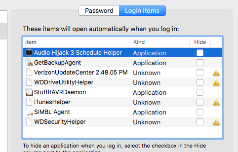 User Login Items: