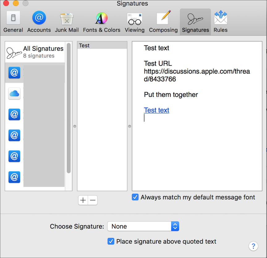 If so, go into the Preferences, open the signature(s) you want to work on.