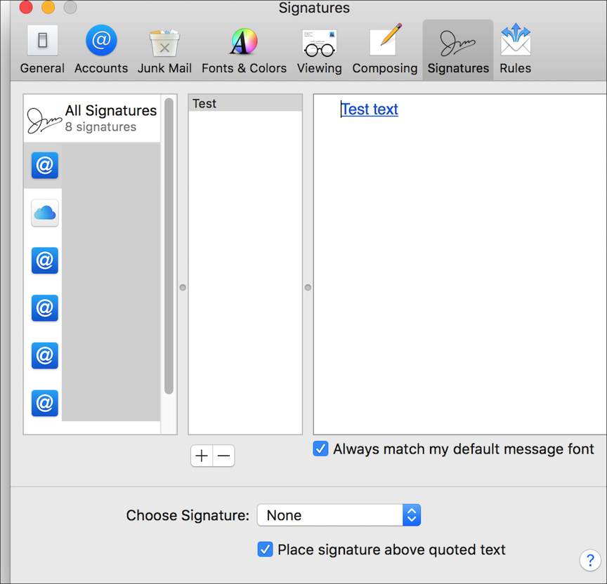 If so, go into the Preferences, open the signature(s) you want to work on.