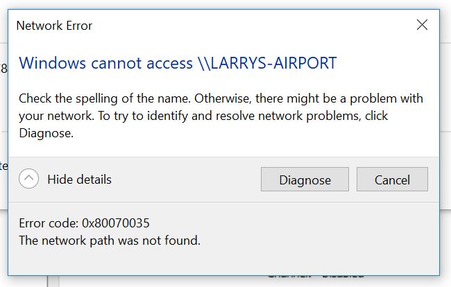 When I was using my Airport Time Capsule as a router I could access it's disk with the file manager on my Win 10 PC. I recently started using a different router and set my Airport to Wireless Network Mode-Off and Network Router Mode-Off(Bridge Mode). Since I did that I am unable to access the disk. My Airport shows up in File Manager