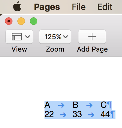 The work around I'm using at the moment is copying the text from pages, and paste it in NOTES (Add table) which evenly spaces the tabs into column cells and then copying it from NOTES into Number.