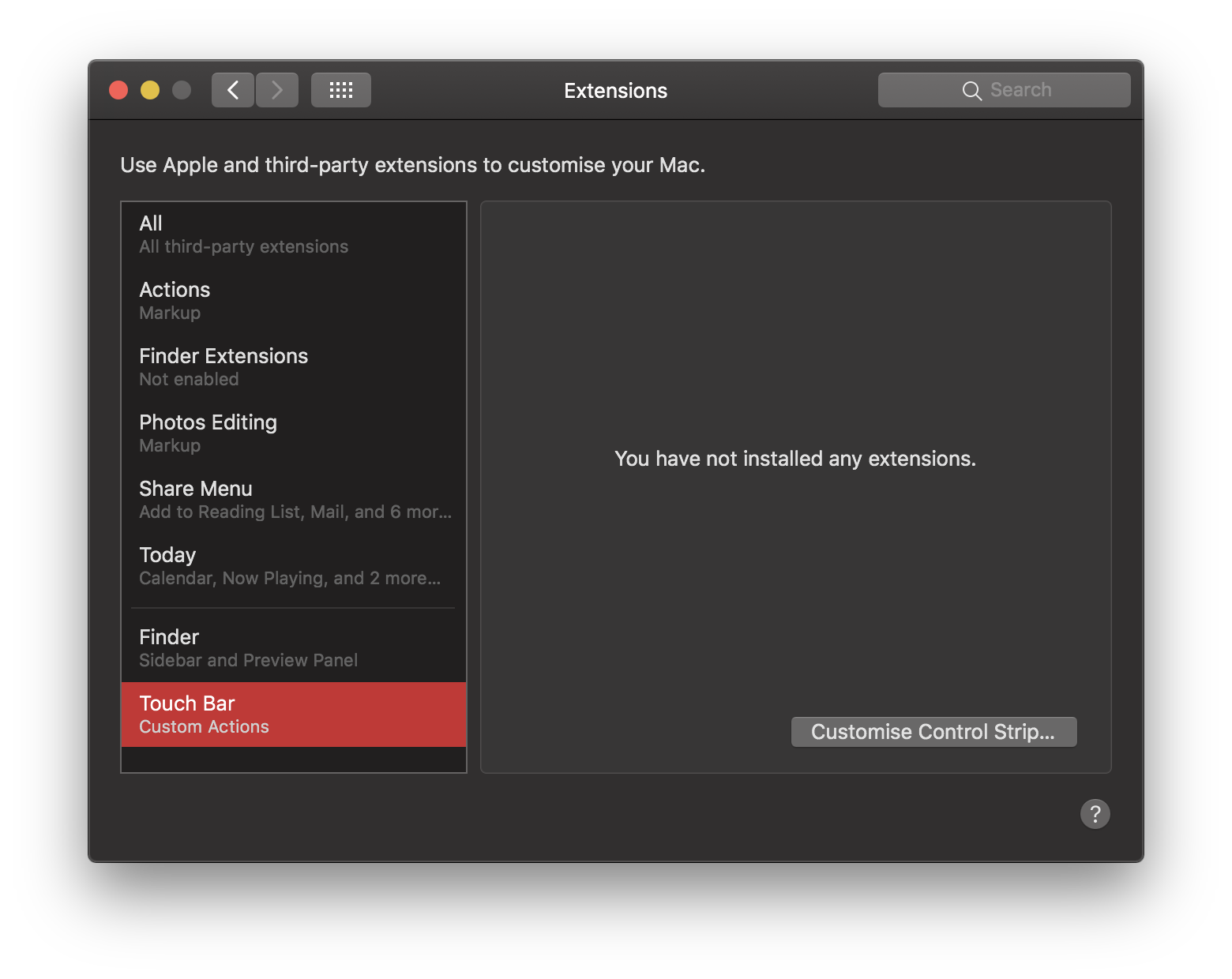 I just discovered in the Extensions menu in System Preferences that there is a sub menu for the Touch Bar, and after a quick inline research I was wondering if there actually are any extensions for the Touch Bar.