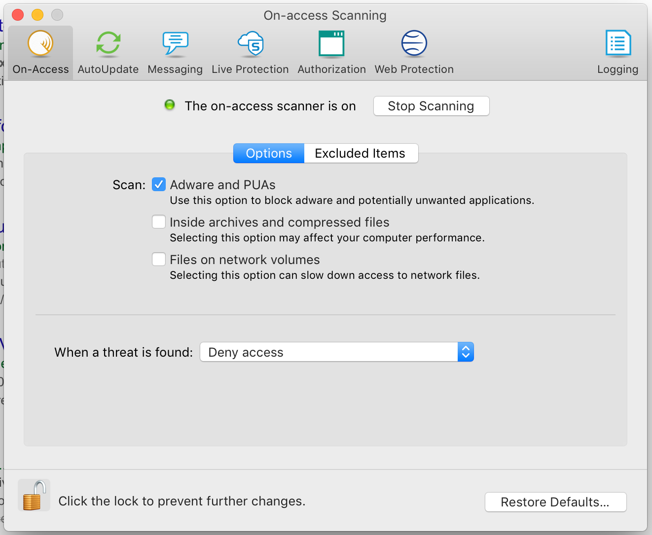 Is your settings in Sophos different than mine? (** scan inside archives **, ** files on network ** notably?)