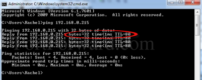 If you ping an address and do not receive a reply, then the IP address is available for you to assign. (See example above.) If you do receive a reply then that IP address is in use and you will have to try a different one. Below is an example showing an address that is already in use.
