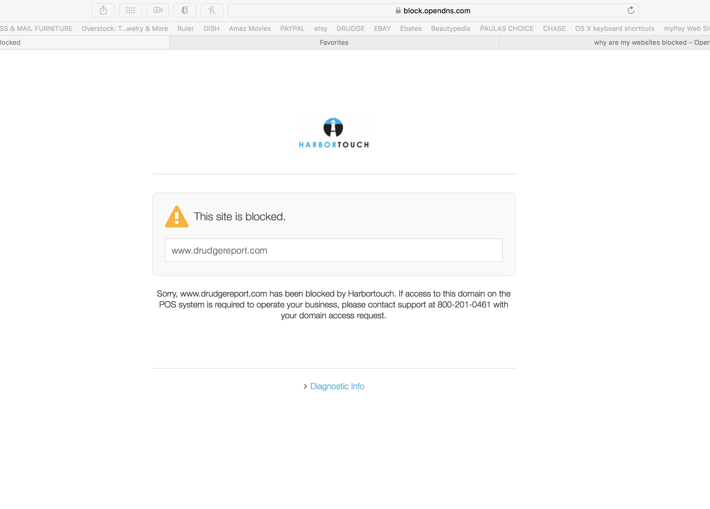 I was viewing a video from youtube last night when, suddenly, Safari stopped working. Every time I tried to open a website, it would reroute to" block.opendns.com" showing the page below. I could however receive mail.