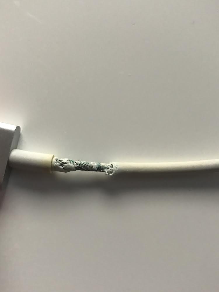 I've had my mac book air and my the corresponding charger that came with it since 2015 and I keep care of everything I have considering nothing has broken, until recently the cord near the end of the charger has turned into a sticky sort of substance and even started to peel off, as I peel off to properly rap I feel the plastic cord that has just come off and there appears to be a green like substance I presume is the glue, however, the plastic cord feels like children play-doh I am even able to mold the cord into a ball like gum as if the glue or whatever substance is somehow in there is eating away at the cord. Pictures are below of what I am referring too. Just looking for someone to help explain why this would even happen in the first place.