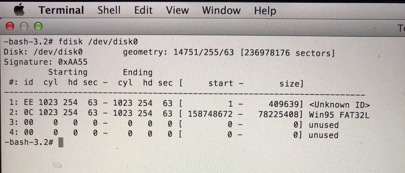 disk0s2 can't mount - Partition shows as "MBR part 255"