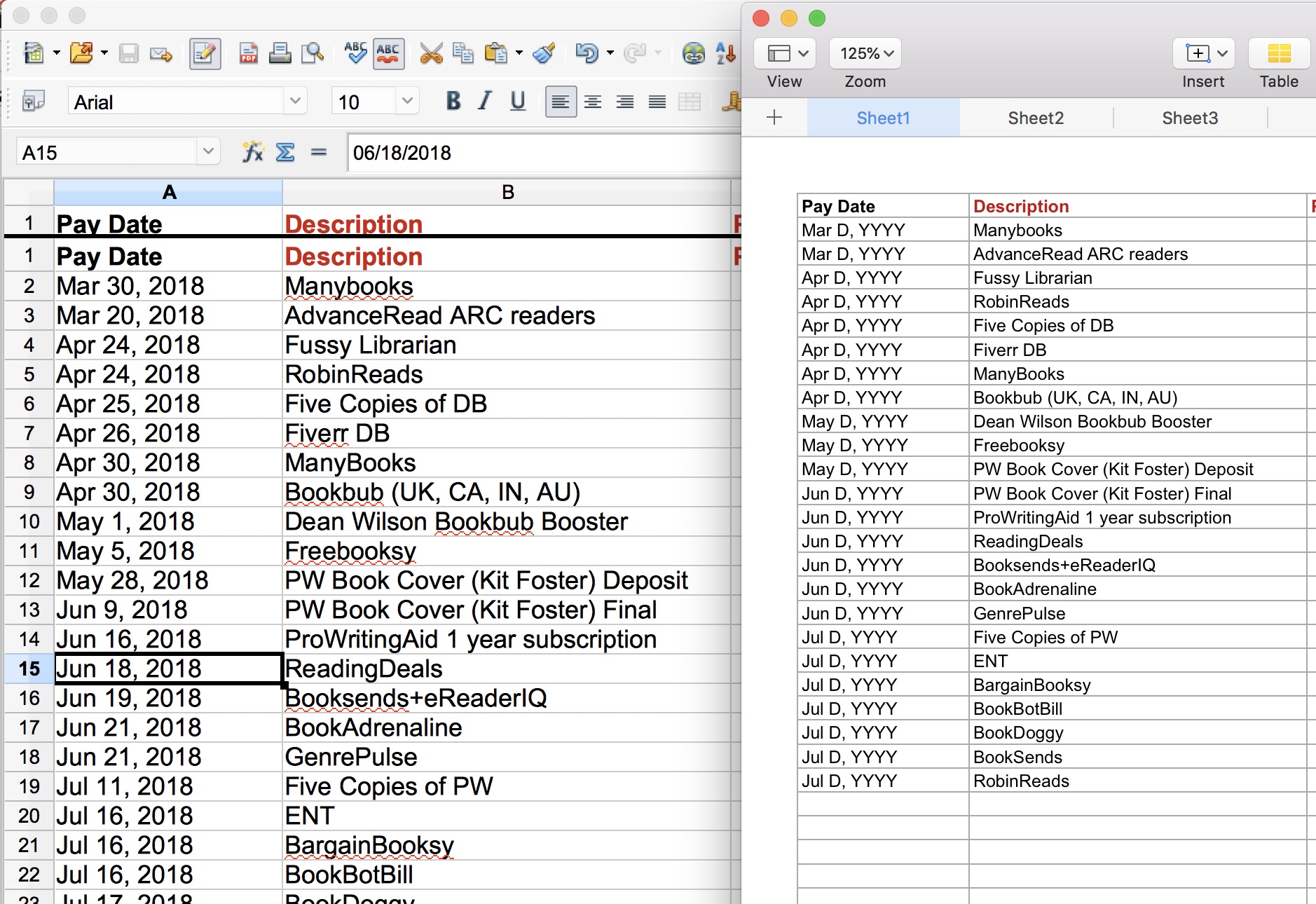 This screenshot shows a problem, namely that a simple date field doesn't convert properly. What you're seeing here is the spreadsheet opened in OO on the left. On the right, is the file in Numbers. That is, I saved the spreadsheet in XLS format from OO then opened it in Numbers. The dates didn't transfer.