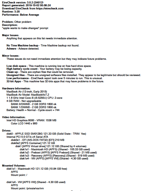 Hi there - I've been having this same problem! Here were my notes from the recommended etrecheck.... Any help would be greatly appreciated!!
