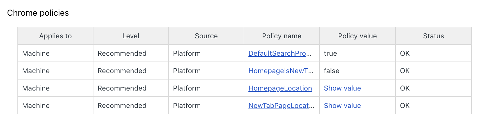 type in: chrome://policy/