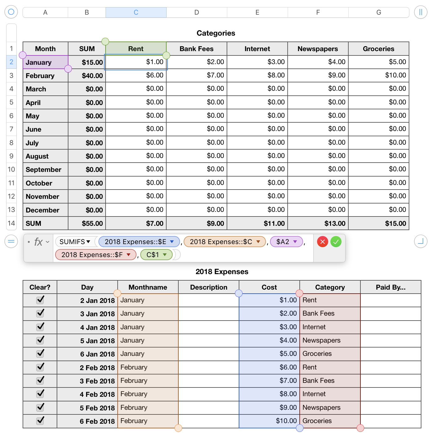I have another simple spreadsheet to track expenses. It consists of 13 sheets: Summary and Jan-Dec. I laboriously clicked all over to populate the summary sheet, which was time consuming. Then I checked here to see if there was an easier way to do this. I noted some threads stating keep all the expense entries in one table, so that is what I did.