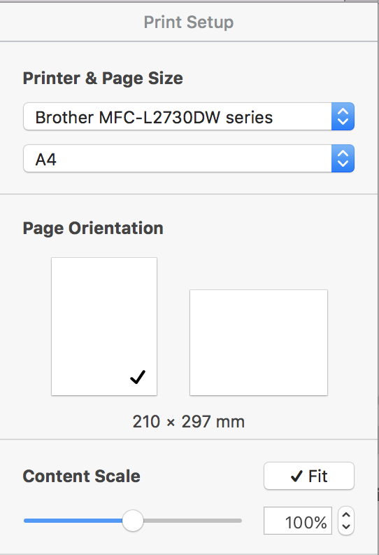 Menu > File > Print (command P) to see the Print Setup Panel.